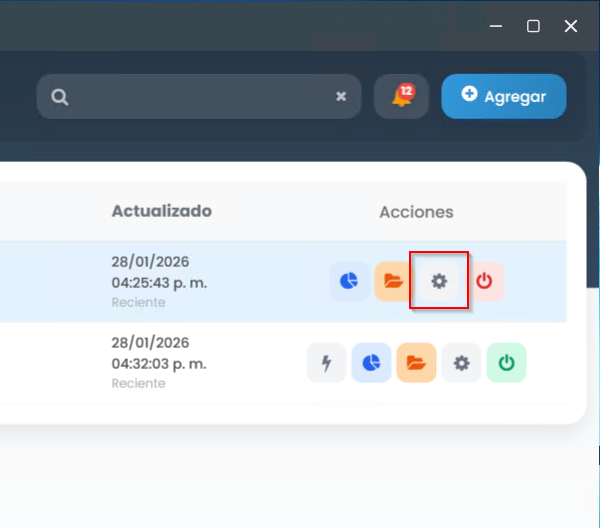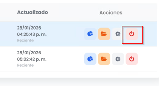 Dentro de Unity, ubica la empresa que deseas actualizar y apágala con el botón verde.