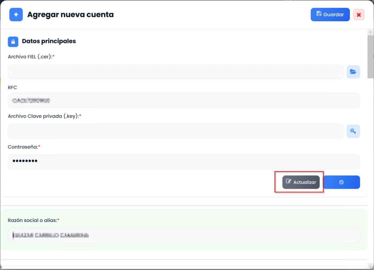 5) Carga la FIEL y guarda